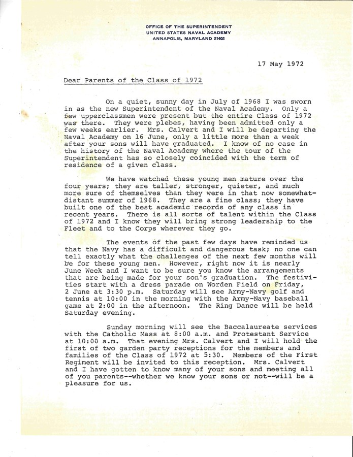 June 7, 1972…the first day of the rest of my life…The Day I graduated from the United States Naval Academy, Annapolis. Annual Letter to Seventeenth Company